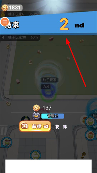 3、競速結束后顯示排名為2nd,可獲得對應數量的金幣,還能選擇觀看視頻翻倍獎勵,結算后可準備開啟下一輪競速。