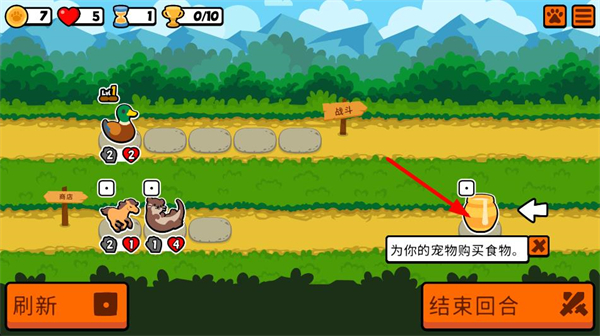 4、購買食物來助力寵物,消耗資源獲取食物后,能提升寵物狀態,調整好后可點擊結束回合推進流程。