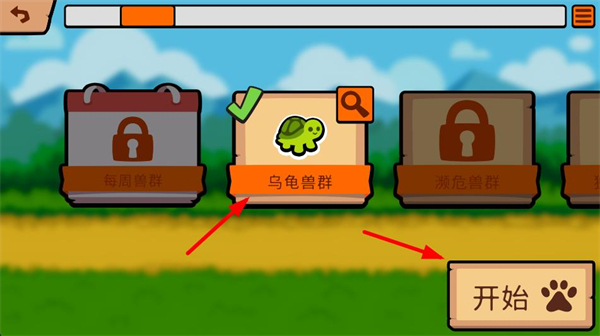 2、在競技模式下選擇解鎖的烏龜獸群,確認后點擊開始按鈕,即可進入該獸群對應的游玩關卡開啟挑戰。