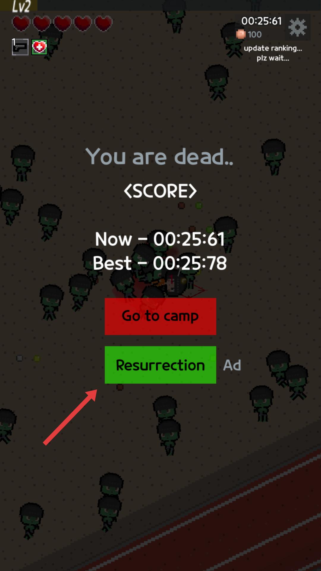 4、若角色死亡,可點擊【Resurrection】按鈕,嘗試復活,繼續游戲,爭取獲得更高的分數和更好的成績。