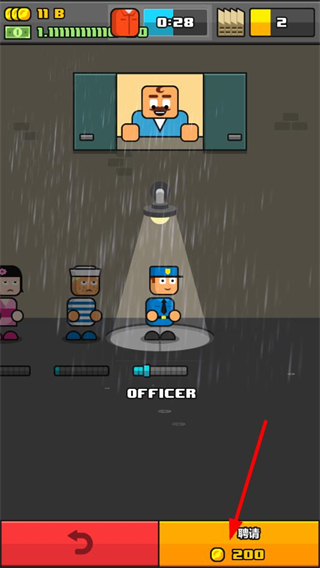 1、進入界面后,點擊聘請按鈕消耗200資源,招募警官類人員,充實工廠的管理配置。