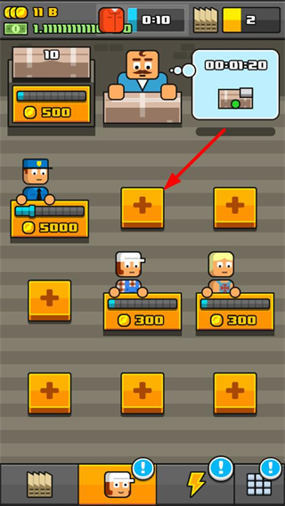 2、在人員界面里,點擊加號按鈕,解鎖新的人員崗位,拓展工廠的人員管理布局。