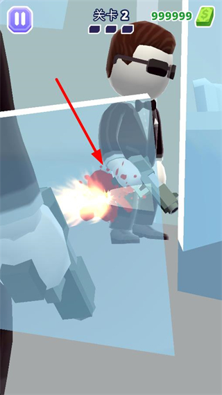 4、進入關卡2,瞄準新出現的角色目標,使用武器攻擊其對應部位,觸發攻擊效果,推進關卡2的目標清除進程。
