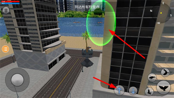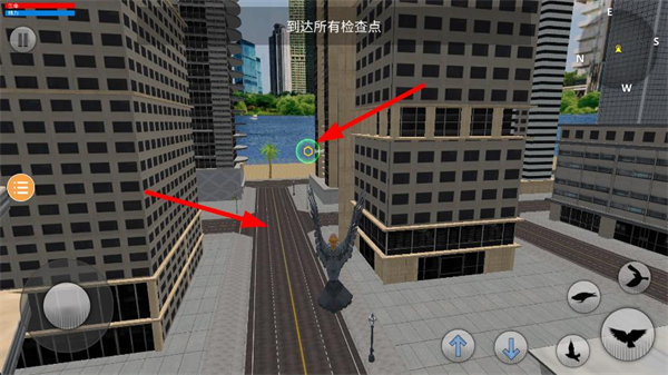 1、操控鴿子移動,朝著建筑旁的綠色檢查點前進,抵達該檢查點完成部分任務目標。