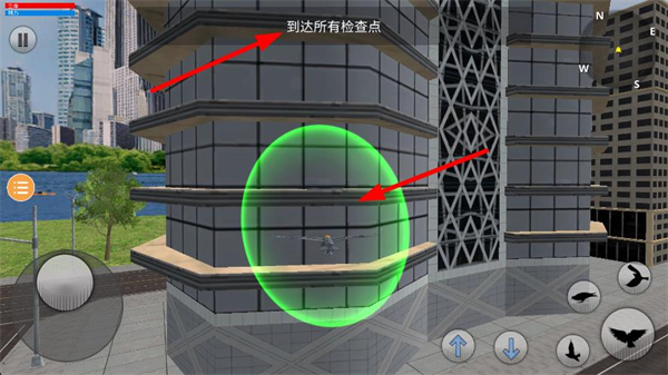 3、繼續調整飛鷹的移動方向,抵達剩余的綠色檢查點,完成所有檢查點的抵達要求。