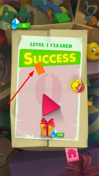 3、關卡完成后出現SUCCESS界面,查看通關提示,點擊對應的按鈕,可領取獎勵并進入下一個關卡,繼續參與游戲。