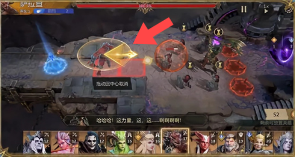 3、在戰斗中拖拽英雄的圖標至目標地點即可上陣對應英雄。