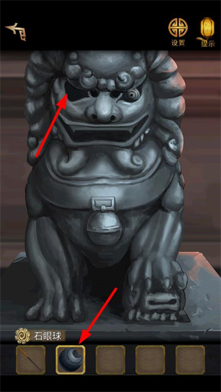 2、選好道具欄里的石眼球,將其對應放到石獅子缺失左眼的位置,完成這一互動操作,推進場景里的探案進程。