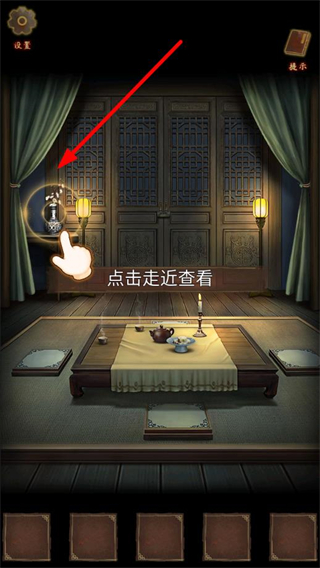 1、在古風場景里,可點擊帶有提示的區域走近查看,探尋場景里的道具或線索,開啟解謎步驟。