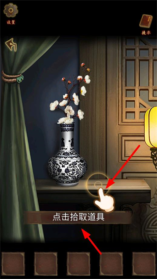 2、走近查看后,點擊對應位置可拾取道具,通過拾取道具來收集解謎所需的物品,推進游戲進程。
