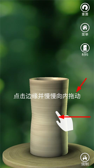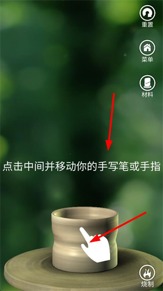 1、點擊中間并移動手指,操控陶土塑形,開啟陶藝制作流程,打造基礎陶器造型,為后續創作奠定基礎。