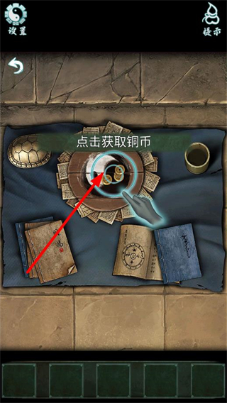 2、走近查看后,點擊對應位置可獲取銅幣,收集三枚銅錢等解謎物品,推進游戲進程。