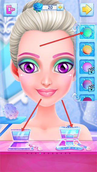 3、能挑選不同顏色的眼影,使用眼影盤為公主涂抹眼影,打造出絢麗的眼妝效果。