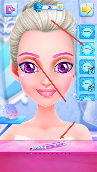2、可選擇不同樣式的眉毛,用化妝筆為公主繪制眉毛,打造出合適的眉形,提升妝容精致度。