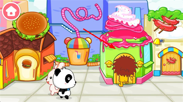 1、進入冰淇淋屋建筑,小獅子跟隨指引前往對應的甜品小屋,準備參與甜品制作的流程。