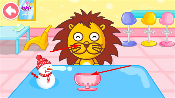4、完成冰淇淋制作后,將其送到對應的小動物面前,看著小動物享用做好的冰淇淋,結束這一輪的制作任務。