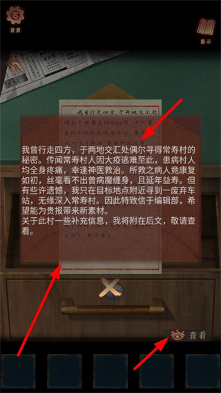 3、打開抽屜后可查看信件,了解關于常壽村的秘密等劇情信息,通過閱讀信件推進故事發展。