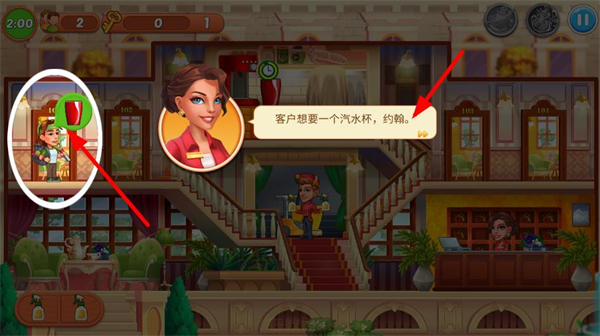 2、進入新關卡后會收到客戶需求提示,按指引為客戶準備所需物品,完成對應的服務操作,滿足客戶的要求。
