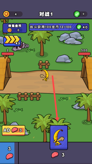 3、召喚香蕉士兵:使用食物資源召喚士兵,根據戰斗需求和資源情況,合理選擇召喚的士兵類型和數量。