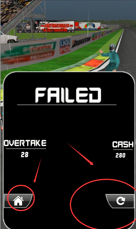 3、游戲失敗,可以點擊右下角重來,點左下角可以返回主頁。