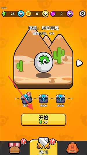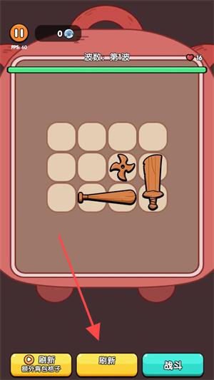 1、點擊開始游戲:進入界面后點擊開始按鈕,正式開啟背包戰斗之旅,踏入充滿挑戰的關卡。