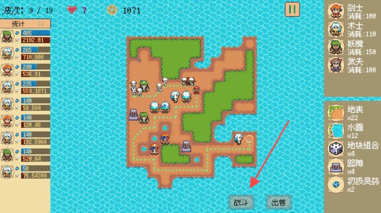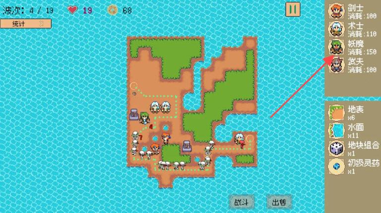 2、了解單位消耗:進入界面,查看右側不同單位消耗數值,如劍士消耗100,為合理布局做好準備。