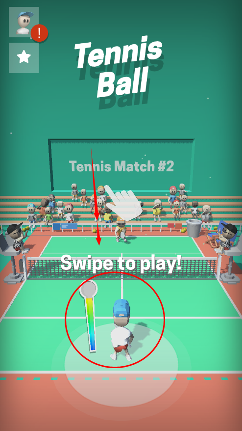 1、按住屏幕網上滑動可發球。