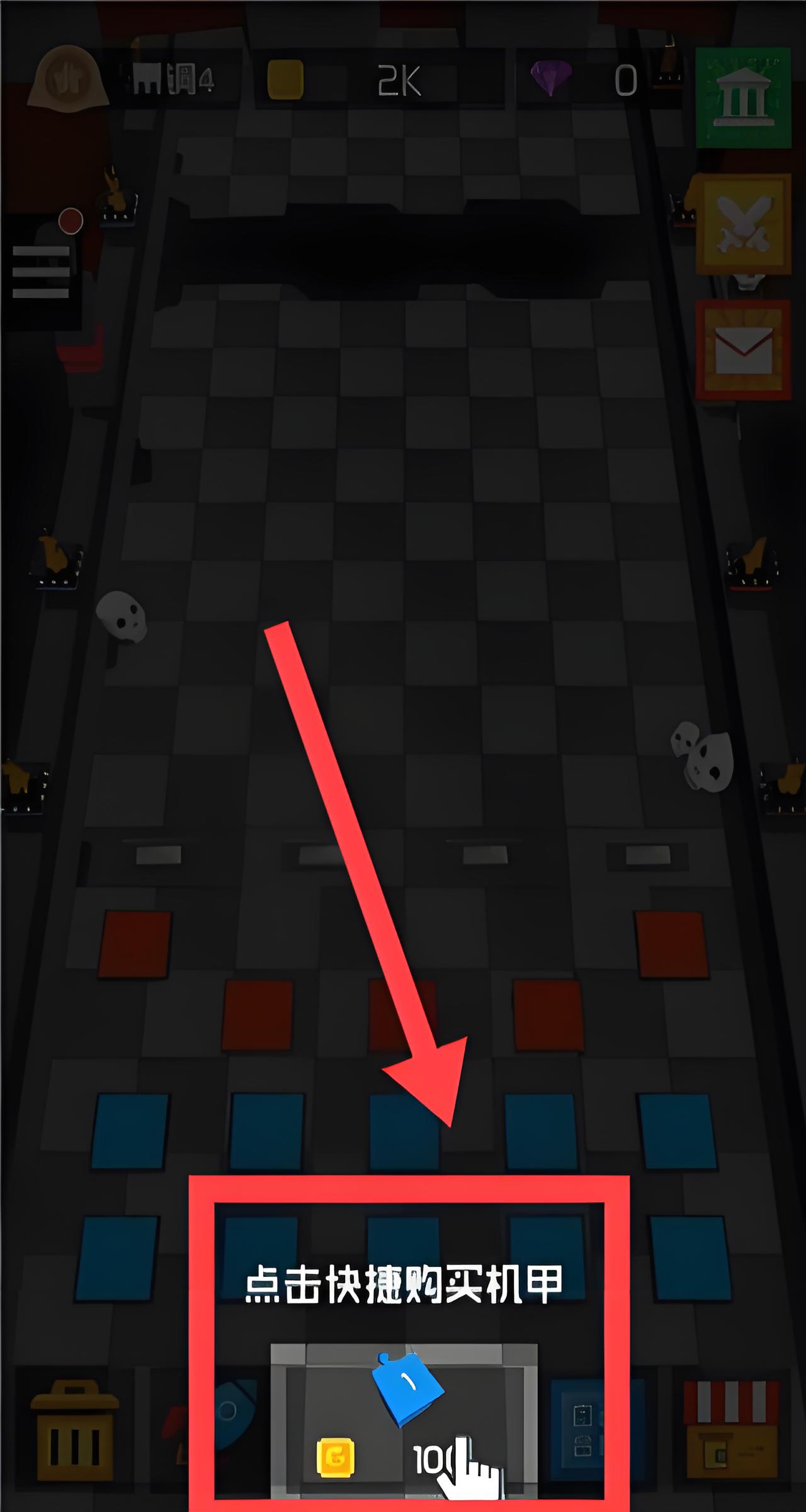 1、進入游戲后,點擊圖標購買機甲。