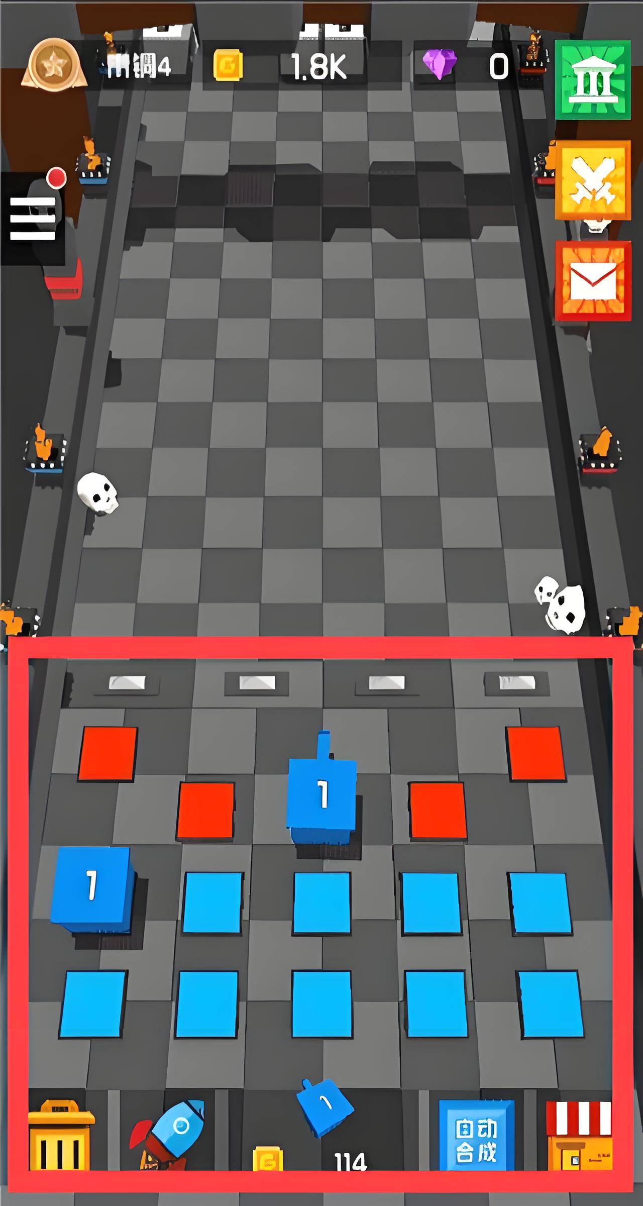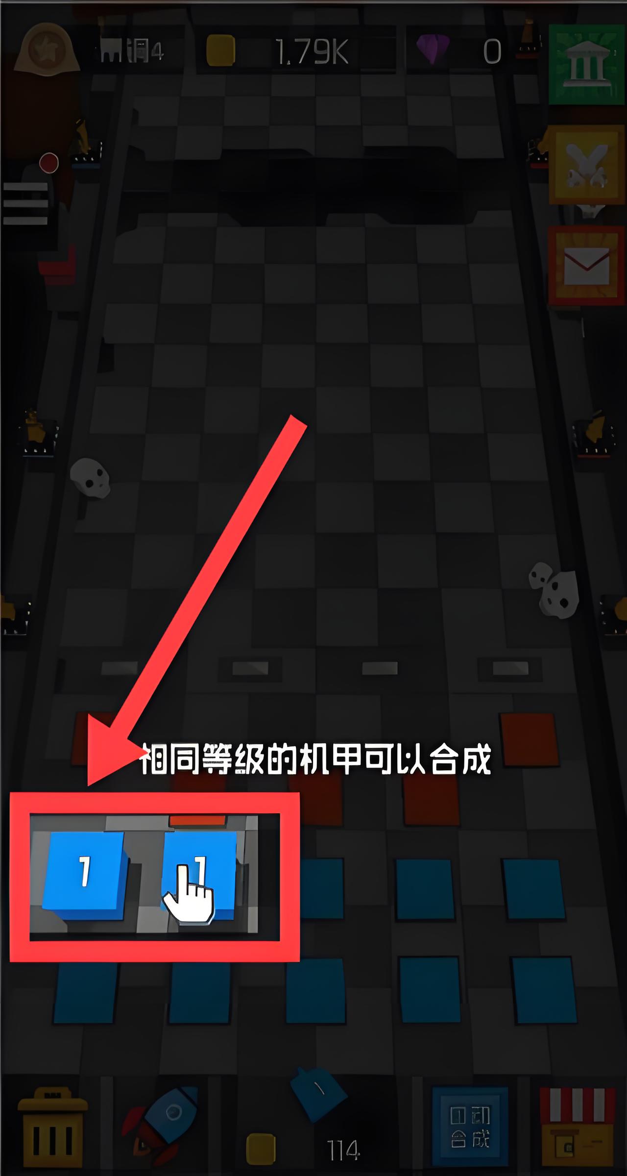 3、方塊合成升級:拖動相同等級方塊機甲進行合成,使其升級為更高等級,增強防御實力。