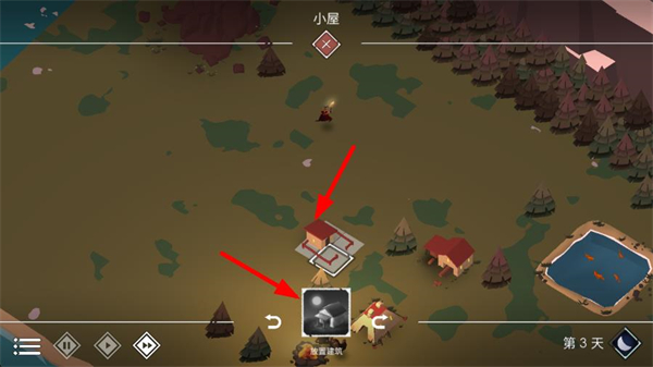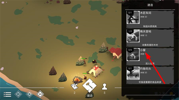 4、選擇小屋建筑后,點擊放置建筑按鈕,將其布置在合適區域,完成該居住設施的搭建,為村落居民提供居住場所。