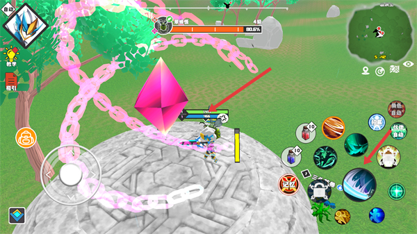 2、可使用技能攻擊怪物,如使用藍色技能攻擊,消耗怪物生命,推進戰斗進程,爭取勝利。