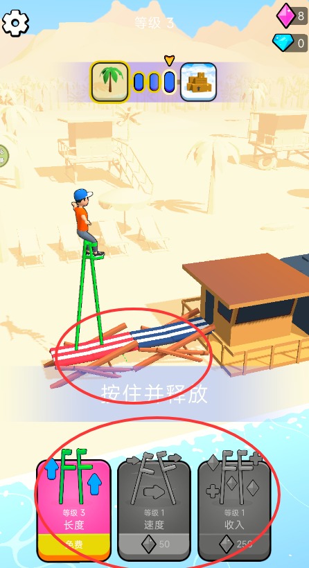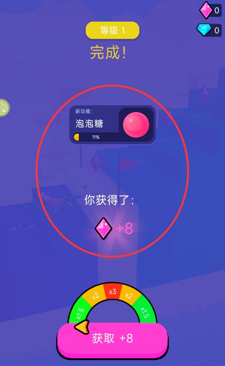 3、成功抵達終點后自動解鎖下一關卡,系統會根據表現發放相應數量的寶石獎勵。