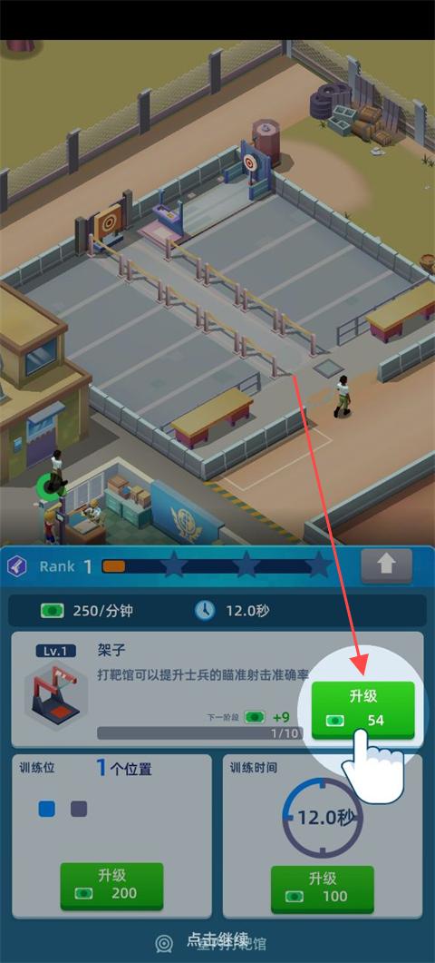 1、點擊升級建筑來讓士兵進行訓練。