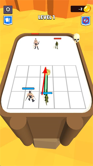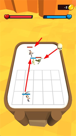 2、陣容布置完成后,點擊START FIGHT按鈕開啟戰斗,讓己方角色與敵方角色在方格區域內展開對戰。