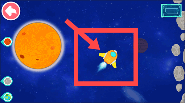1、下載安裝好寶寶巴士奇妙星際宇航員,進入游戲你可以滑動屏幕上下左右來控制飛船。