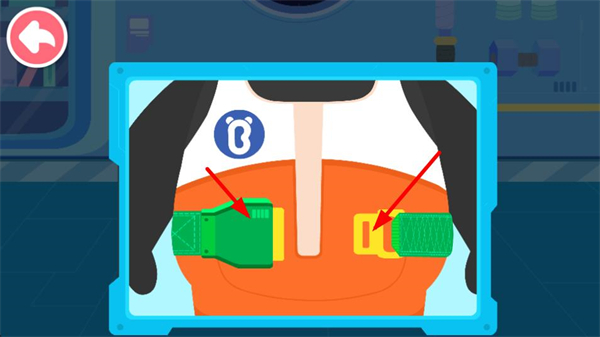 1、操作裝備的綁帶部件,將不同顏色的綁帶對應拼接扣合,完成裝備的固定環節,為后續的太空訓練做基礎鋪墊。