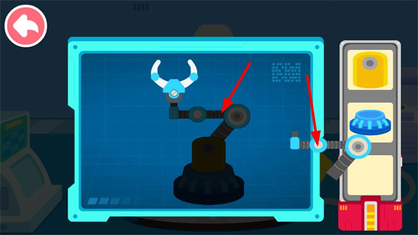 3、處理機械部件的組裝,從右側選取對應配件,將其與機械主體拼接契合,完成機械裝置的搭建環節,豐富場景內的設施。