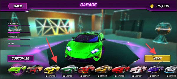 2、車輛解鎖挑選:選好模式后,依據自身金幣數量,解鎖心儀車輛,不同賽車擁有獨特外觀與性能,按需選擇。