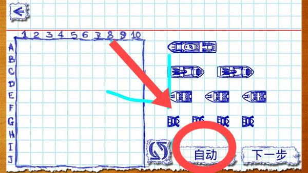 1、精心布置艦隊:可手動或點擊Auto一鍵隨機布陣,合理安排戰艦位置。