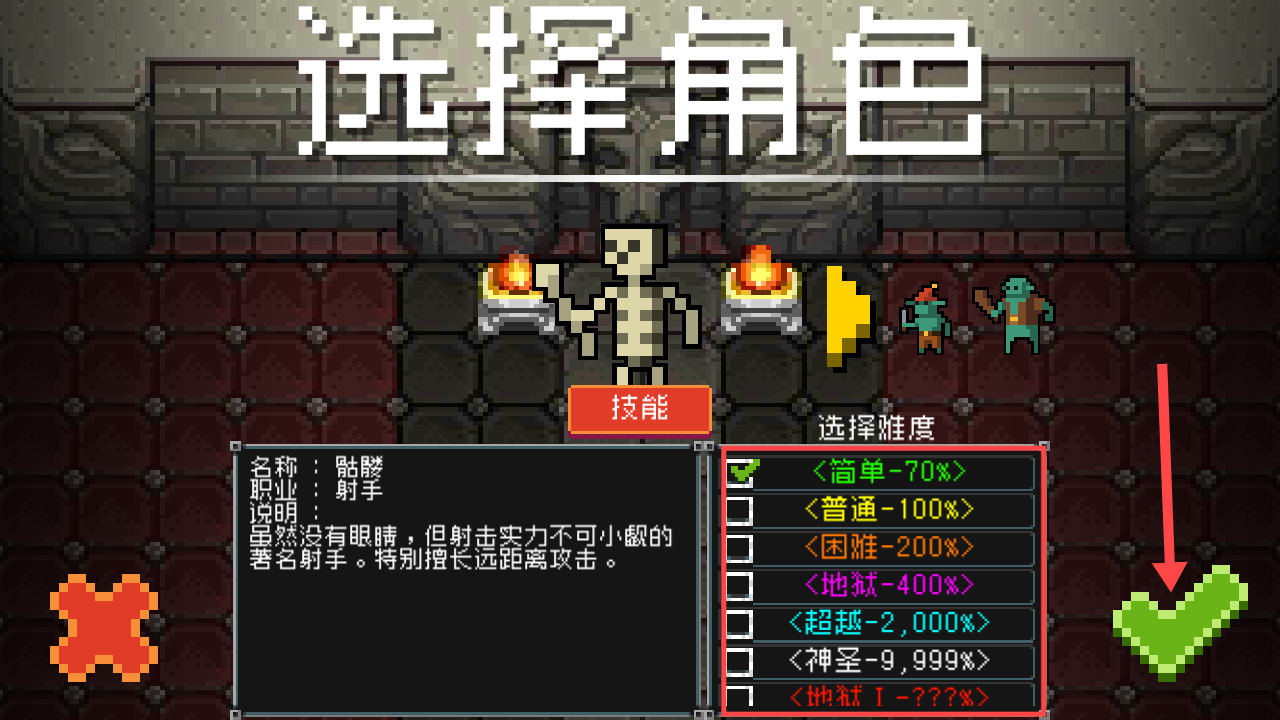 3、玩家根據方框內自行調節難度后,點擊右下角指標處即可開始玩耍,體驗冒險的豐富旅程。