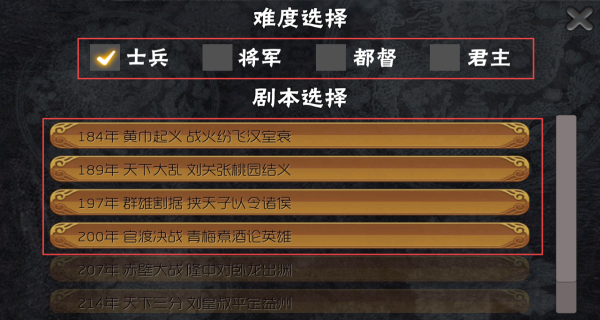 1、開局勢力抉擇:進入游戲點擊“新的征程”,自主選擇難度與劇本,挑選心儀君主開啟三國霸業。