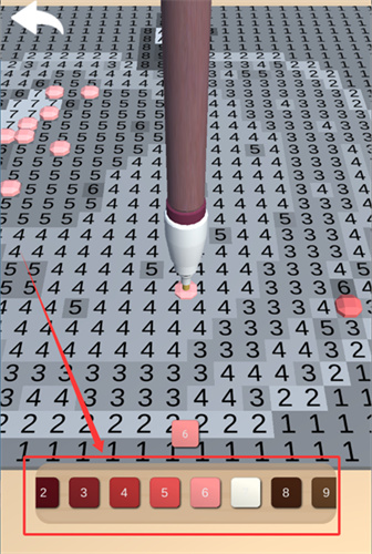 3、畫面底部設有色盤標注數字編號,輕觸對應數字即可快速切換當前使用顏色。