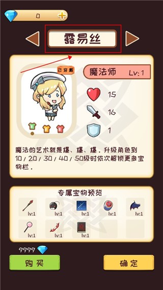 1、開始推薦使用的是露易絲法師,她本身自帶的寶物是走或攻擊五步,隨機攻擊敵人百分之七十的傷害。