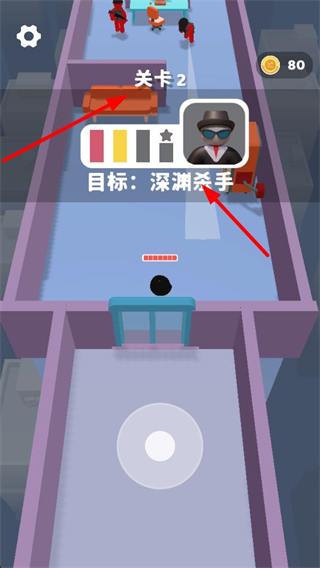 3、界面顯示目標為深淵殺手,同時呈現關卡場景及角色,明確目標后可操控角色在場景內移動,準備完成關卡任務。