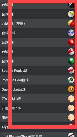 2、挑選你想要打的臺球,不同臺球規則中任意選擇一個你熟悉或者想要玩的進行游戲。