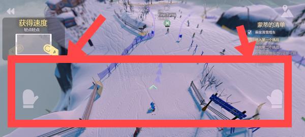 2、操控滑雪加速:點擊兩側手掌圖標控制滑雪板,實現加速前進與特技操作。