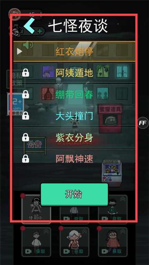 3、七夜怪談模式:按順序通關七張地圖,中途不可退出,利用金幣升級建筑抵擋紅衣鬼。