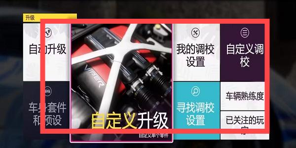 2、車輛調校操作:進入車庫在升級與調校界面選擇定制零件,對剎車彈簧等部件升級以解鎖調校功能。