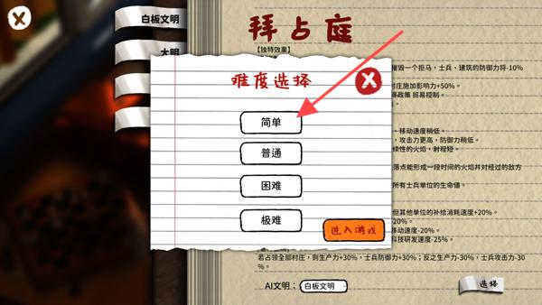 1、開局難度選擇:玩家可根據自身實力與偏好,選擇適合的難度開啟征服之路。