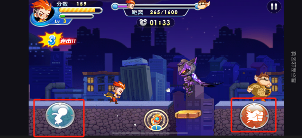 2、點擊后就可以正式進入挑戰頁面,找到頁面上操控角色跳躍和攻擊的圖標。